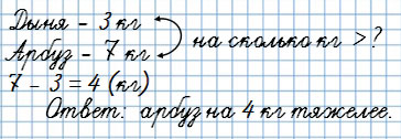 3. Масса дыни 3 кг, а арбуза 7 кг. На сколько килограммов арбуз тяжелее дыни?