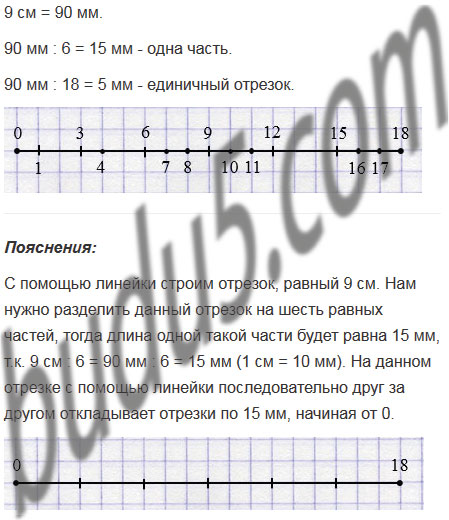 Начертите отрезок длиной 9 см. Над одним концом отрезка напишите 0, а над другим 18. Разделите отрезок на шесть равных частей. Назовите числа, которые соответствуют каждому штриху деления. Отметьте на полученной шкале числа 4, 7, 8, 10, 11, 16, 17.