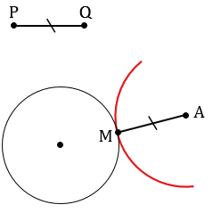 Даны окружность, точка А, не лежащая на ней, и отрезок PQ. Постройте точку М на окружности так, чтобы АМ = PQ. Всегда ли задача имеет решение?