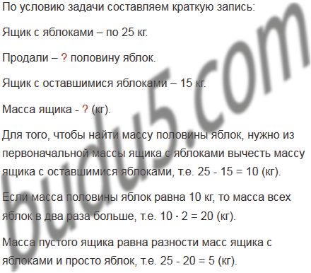 Масса полного ящика с яблоками составляет 25 кг. После того как продали половину яблок, масса ящика с оставшимися яблоками оказалась равной 15 кг. Какова масса пустого ящика?