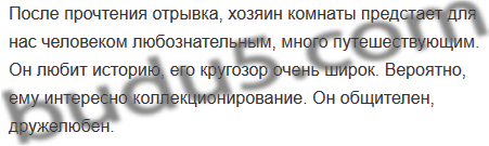 Прочитайте текст. Постарайтесь определить, кто хозяин комнаты. Пользуясь сведениями из текста, расскажите об особенностях этого человека, его занятиях, увлечениях.