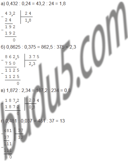 а) 0,432 : 0,24;