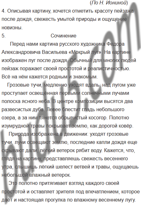 Прочитайте текст, в котором дано описание картины Ф. Васильева «Мокрый луг». Соответствует ли содержание текста картине? Что. по мнению автора, больше всего удалось художнику?