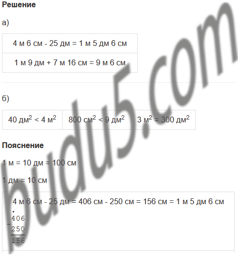 | 4 м 6 см - 25 дм | 1 м 9 дм + 7 м 16 см |
